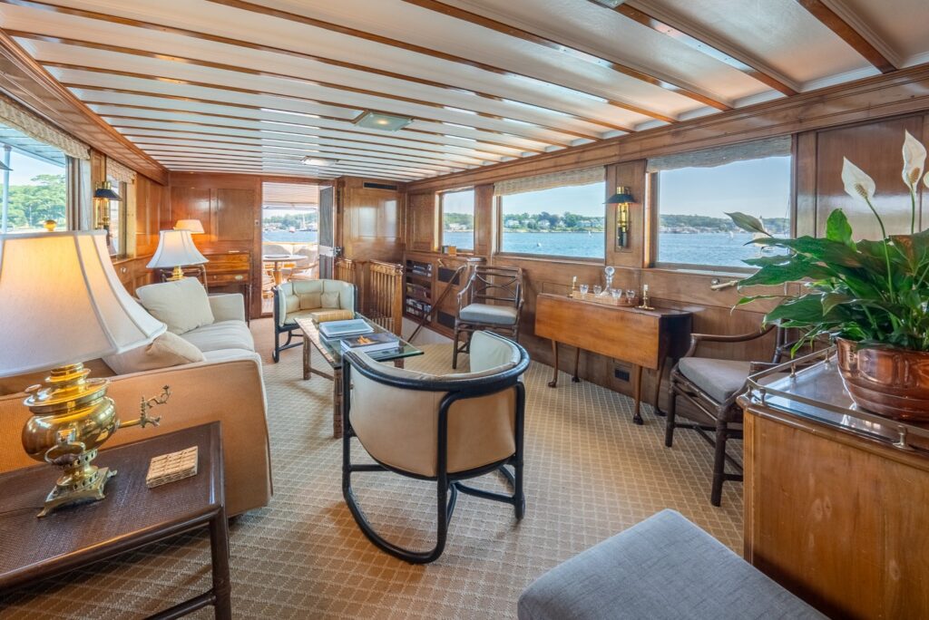 - BERNADETTE (71’ Trumpy 1958) showcases the beloved “galley-up” layout that enhances social spaces and cruising comfort — a hallmark of thoughtful design from the Trumpy tradition.