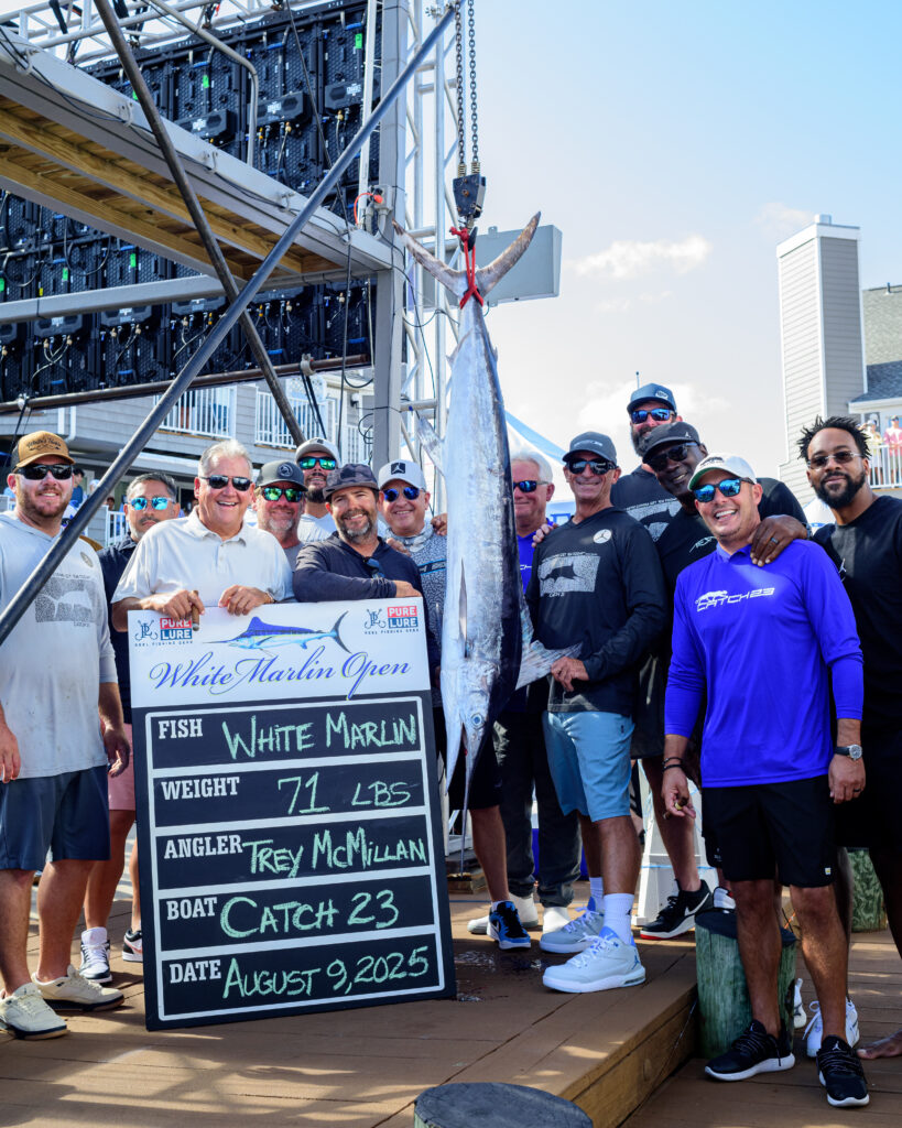 The 71-pound fish that angler Trey “Cricket” McMillan boated on Jordan’s Catch 23 was just one pound shy of first place. That title was earned by the 72-pound white marlin caught by Ocean City angler Dan Gough on the Billfisher. The top fish won Gough and his team a sweet $3.9 million. While it was Gough’s first win, the Billfisher team is no stranger to victory. The 64-foot Duffie Boatworks fishing boat won in 2022 for a 77.5-pound white marlin. Catch 23 and Billfisher were the only boats to bring in qualifying white marlins during the 2025 weeklong tournament.